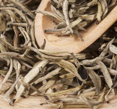 White tea is made from the same plant as Black, Green and Oolong teas, but the leaves treated slightly differently. Unlike other varieties of tea, the youngest growth on the tea bush is picked for White teas – before the leaves have opened. They are then dried immediately to stop them oxidising.